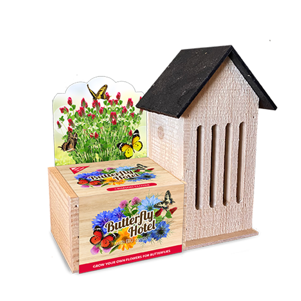 Geniet van fladderende vlinders in je tuin met dit butterfly hotel. Met de juiste beplanting en zonlicht biedt het hotel een fijne schuilplek voor vlinders en andere insecten. Een mooi en natuurlijk cadeau.