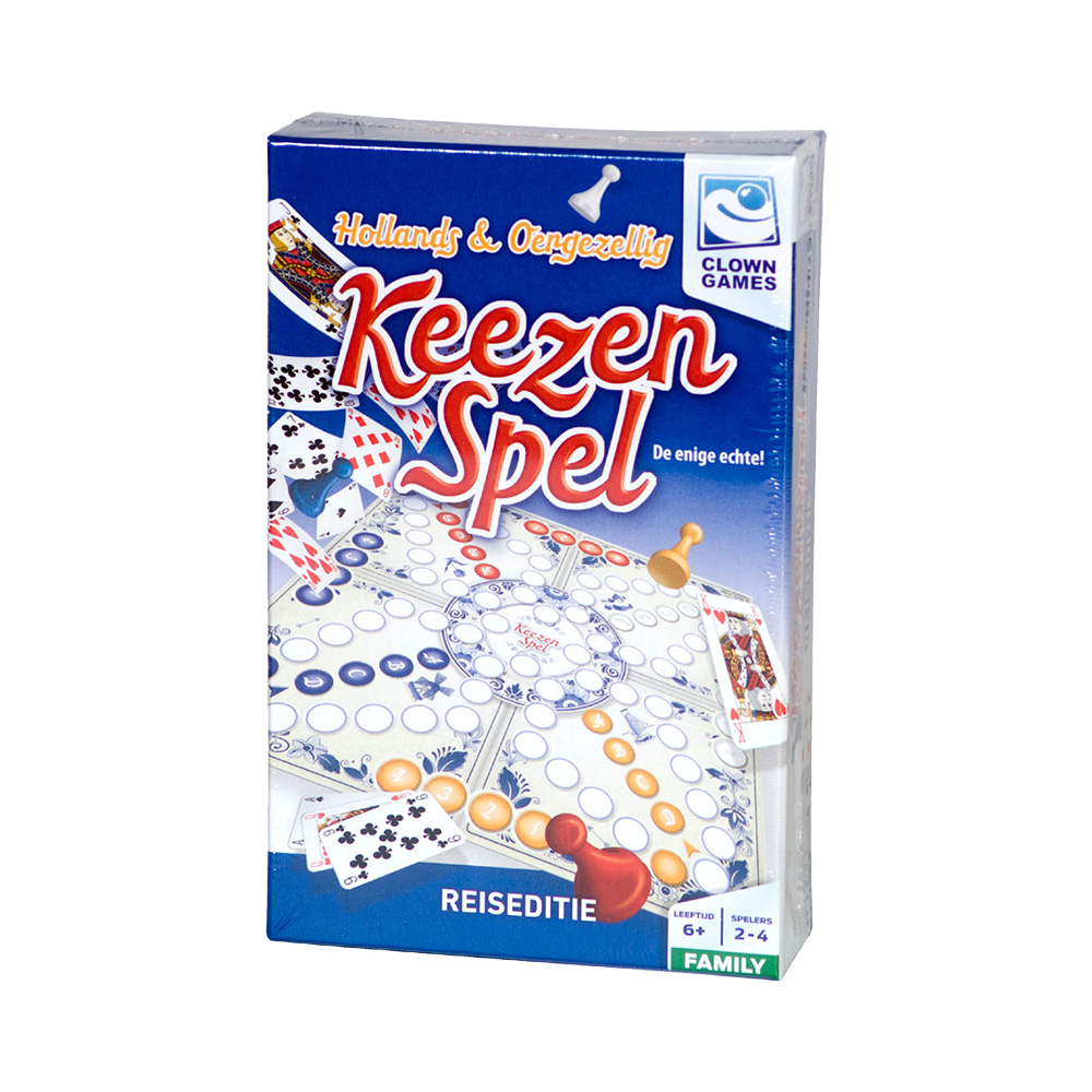 Het leukste bordspel van Nederland, maar dan in een handig reisformaat! De Clown Games Keezenspel reiseditie combineert het beste van Mens Erger Je Niet en Pesten. Dankzij het compacte bord en de stevige pionnen speel je dit overal: in de tent, de caravan of op het terras.