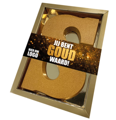 Deze ambachtelijke gouden chocoladeletter van 200 gram zegt het allemaal; JIj bent goud waard! Deze eyecatcher is ook nog eens te personaliseren met uw bedrijfslogo. Een uniek Sinterklaasgeschenk voor uw team of relaties.