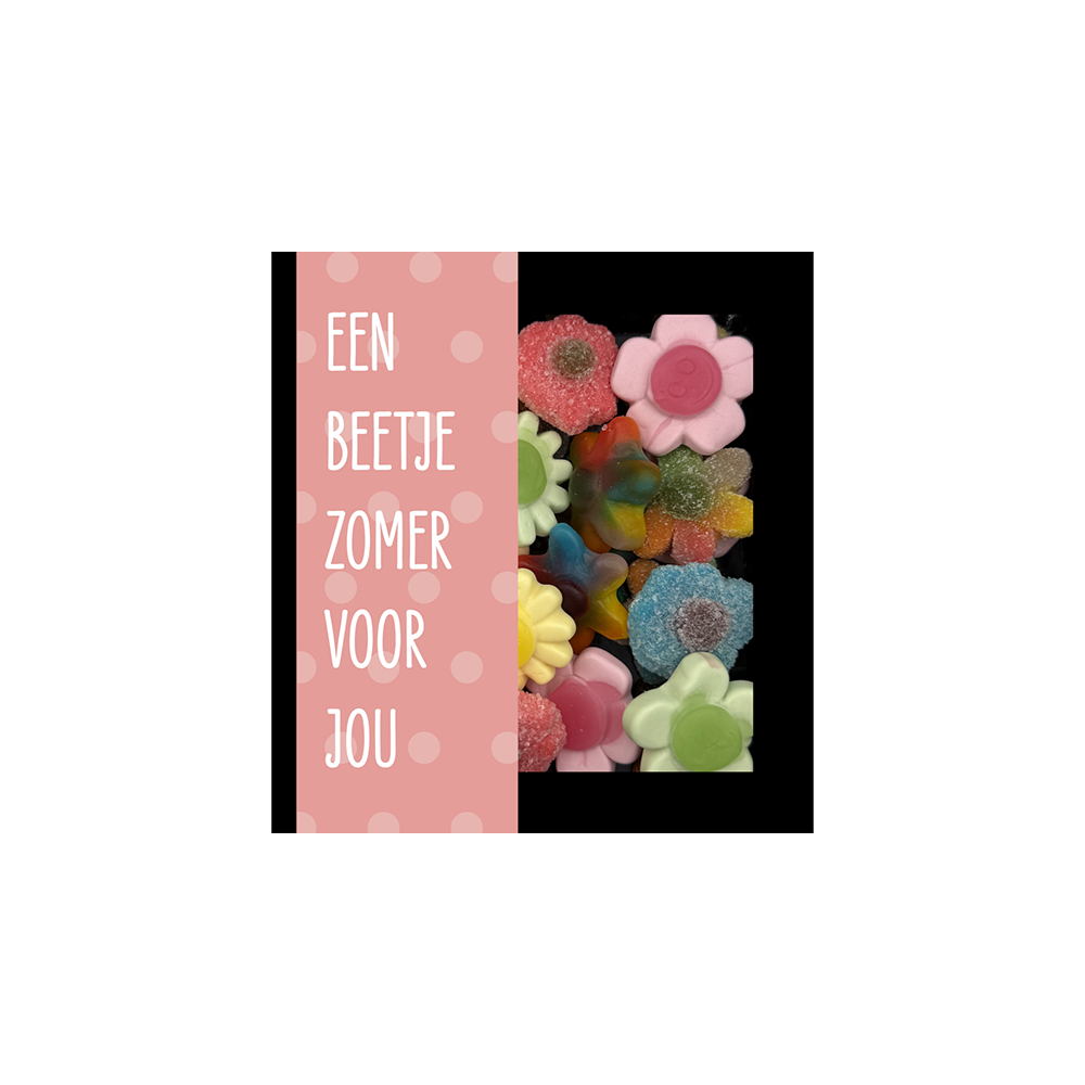 Breng de zon in huis (of de brievenbus) met het Liv n Taste Snoepdoosje "Zomer". Dit vrolijke doosje is gevuld met een selectie van de lekkerste, frisse snoepjes die perfect passen bij warme dagen. Ideaal als zakelijk weggevertje of als kleine verrassing voor vrienden.