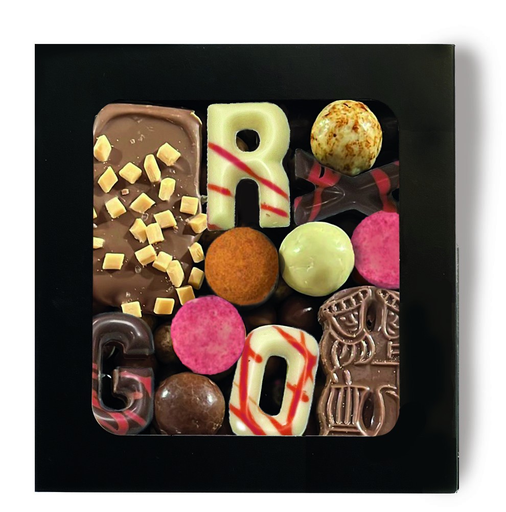 Luxe vensterdoos met een mix van heerlijke kruidoten en chocolade. Perfect om te delen! 140 Gram lekkers dat er bijna te mooi uitziet om op te eten.