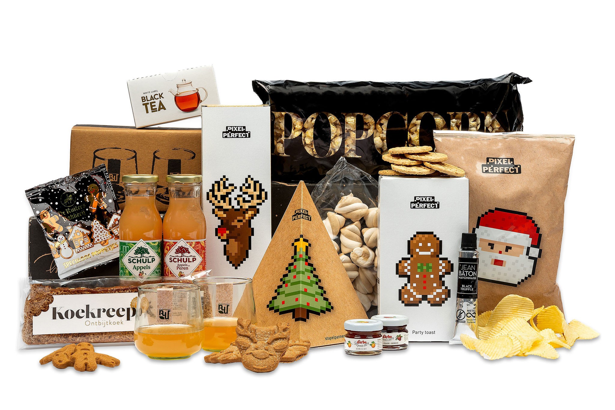 Laat medewerkers thuis een vrolijke en feestelijke kerstavond beleven met het kerstpakket Pixel Xmas. Het pakket nodigt uit tot ontspannen, genieten van diverse lekkernijen en samen lachen tijdens een gezellige, kleurrijke avond. Met feestelijke snacks, hapjes en kleine verrassingen creëert dit pakket een vrolijke en sfeervolle kerstervaring. Pixel Xmas is meer dan een geschenk; het is een attent gebaar dat laat zien dat je medewerkers gewaardeerd worden. Een stijlvol en doordacht pakket dat de ware warmte van de feestdagen viert.