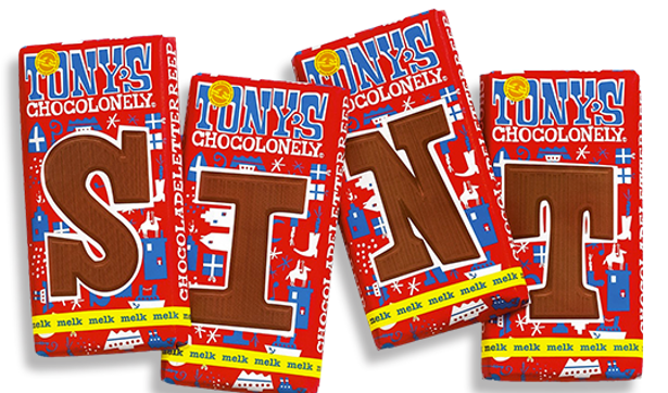 Een Sinterklaasgeschenk dat iedereen waardeert: Tony's Chocolonely. Goede en eerlijke chocolade. Een echte Tony's letterreep van 180 gram.