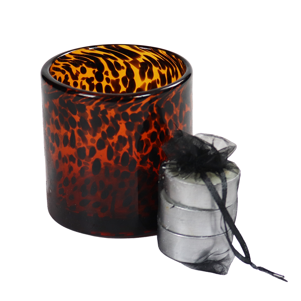 De Waxinelichthouder Jennifer is dé eyecatcher voor liefhebbers van een warm en trendy interieur. Het glas is uitgevoerd in een sfeervolle amberkleur met een gedurfd panther-vlekpatroon. Wanneer je er een kaarsje in brandt, geeft de houder een warme, gouden gloed af. Dit sfeerlicht wordt compleet geleverd met een voorraadje waxinelichtjes in een zakje, zodat je direct kunt genieten van extra gezelligheid in huis.