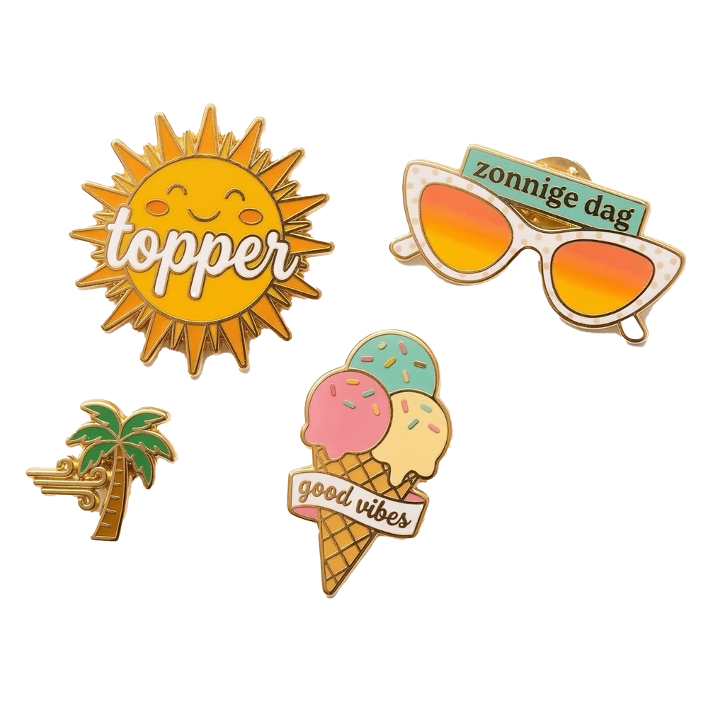 Geef je kleding, rugzak of shopper een vrolijke upgrade met deze set zomerse emaille pins. De pins zijn gemaakt van hoogwaardig emaille met goudkleurige details en blijven stevig zitten dankzij de handige vlindersluiting. Een perfect 'kleinigheidje' voor elke zomerliefhebber.